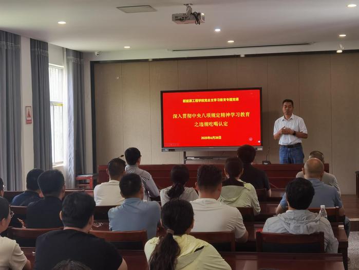 6月28日,新能源工程公司党总支举办了一场别开生面的学习教育专题党课,本次党课由公司书记徐新斌主讲,主题为“深入贯彻中央八项规定精神学习教育之违规吃喝认定”。此次党课旨在进一步巩固深化主题教育和党纪学习教育成果,纵深推进全面从严治党,密切党群干群关系,巩固党的执政基础。