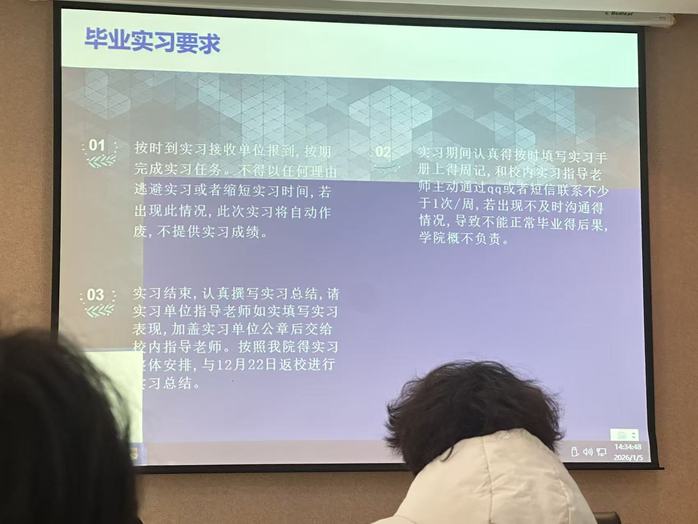 1月5日,beats365官方网站电子信息工程技术专业召开2026届毕业生顶岗实习动员大会,出席人员有电子信息工程技术专业老师11人,毕业生80余人。专业主任杨东主持会议并作动员部署。